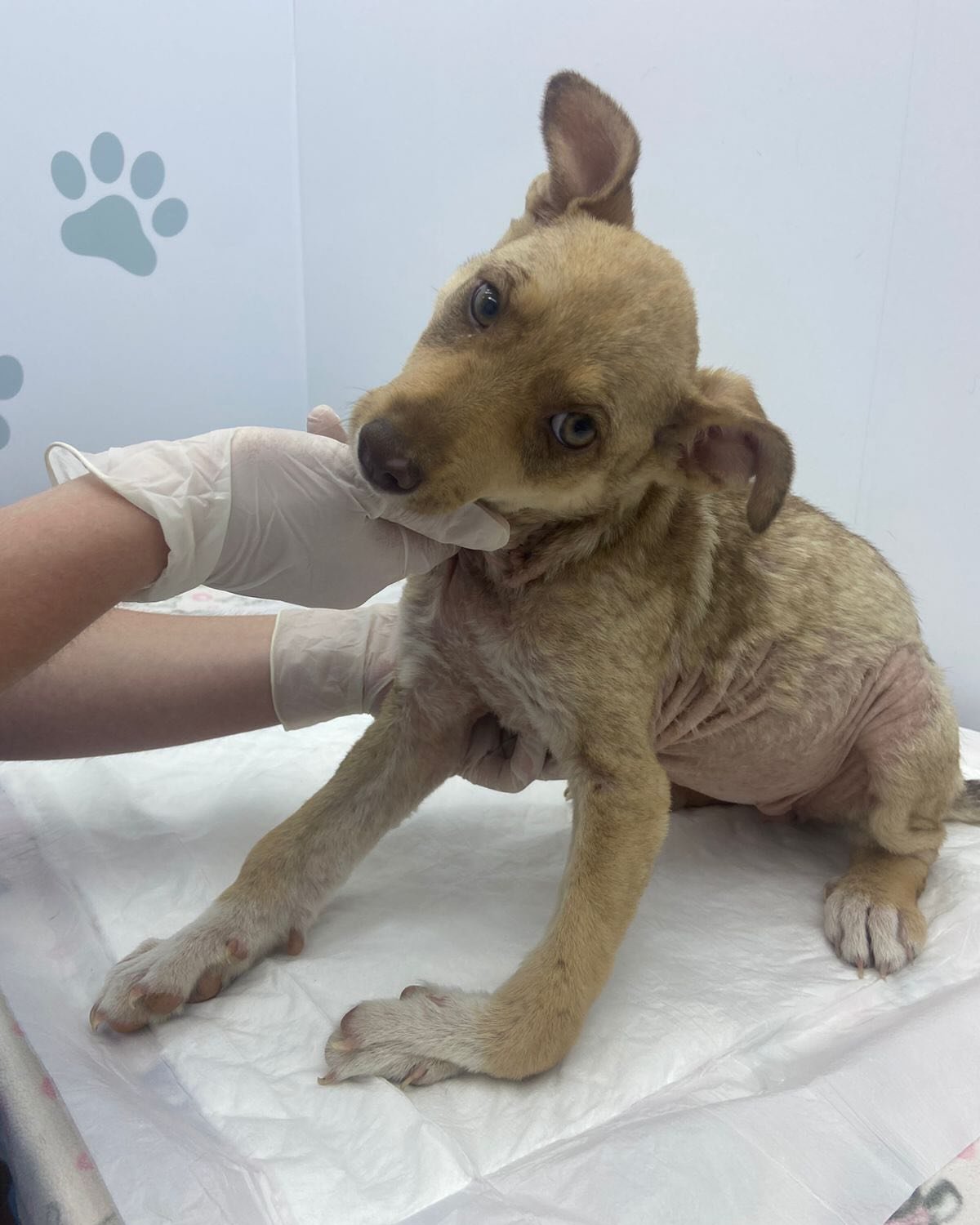 Fui resgatada após ser encontrada na rua com as perninhas tortas, as tias falaram que é porque eu tenho deficiência de cálcio, também estava com muitas falhas nos pelos, que pode ser por alergia ou carência nutricional. Agora as tias vão cuidar de mim até eu me recuperar e poder ganhar uma família. Você pode ajudar?