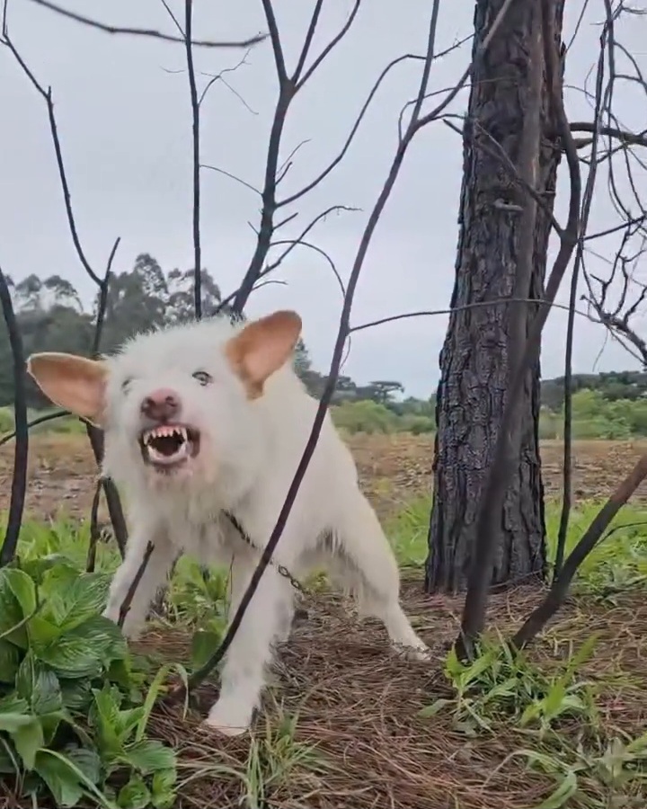 Fui resgatado após ser descartado, me amarraram em uma árvore, nas margens de uma rodovia. Eu estava muito assustado e tentei morder as tias, mas elas tiveram muita paciência e carinho e conseguiram me ajudar. Fui pra clínica, fiz todos os exames e logo poderei ter a chance de encontrar uma família que me ame de verdade.