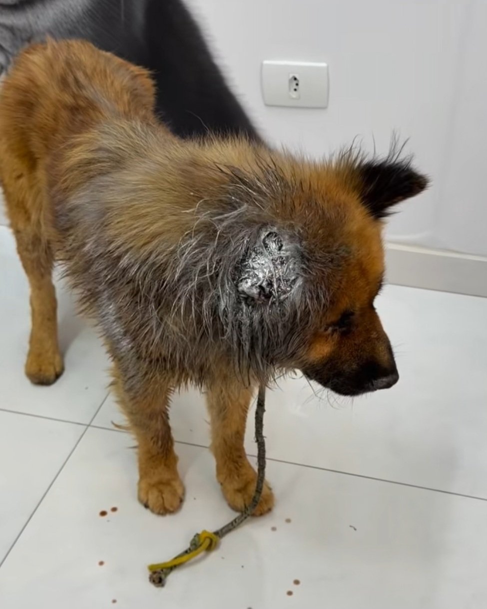 Fui resgatado após ser encontrado numa área rural bem afastada, estava muito magro e debilitado, com uma grande lesão na cabeça tomada pelos bichinhos além de estar infestado de carrapatos. Meu caso é grave, preciso de exames, medicação e internamento. Você pode ajudar?