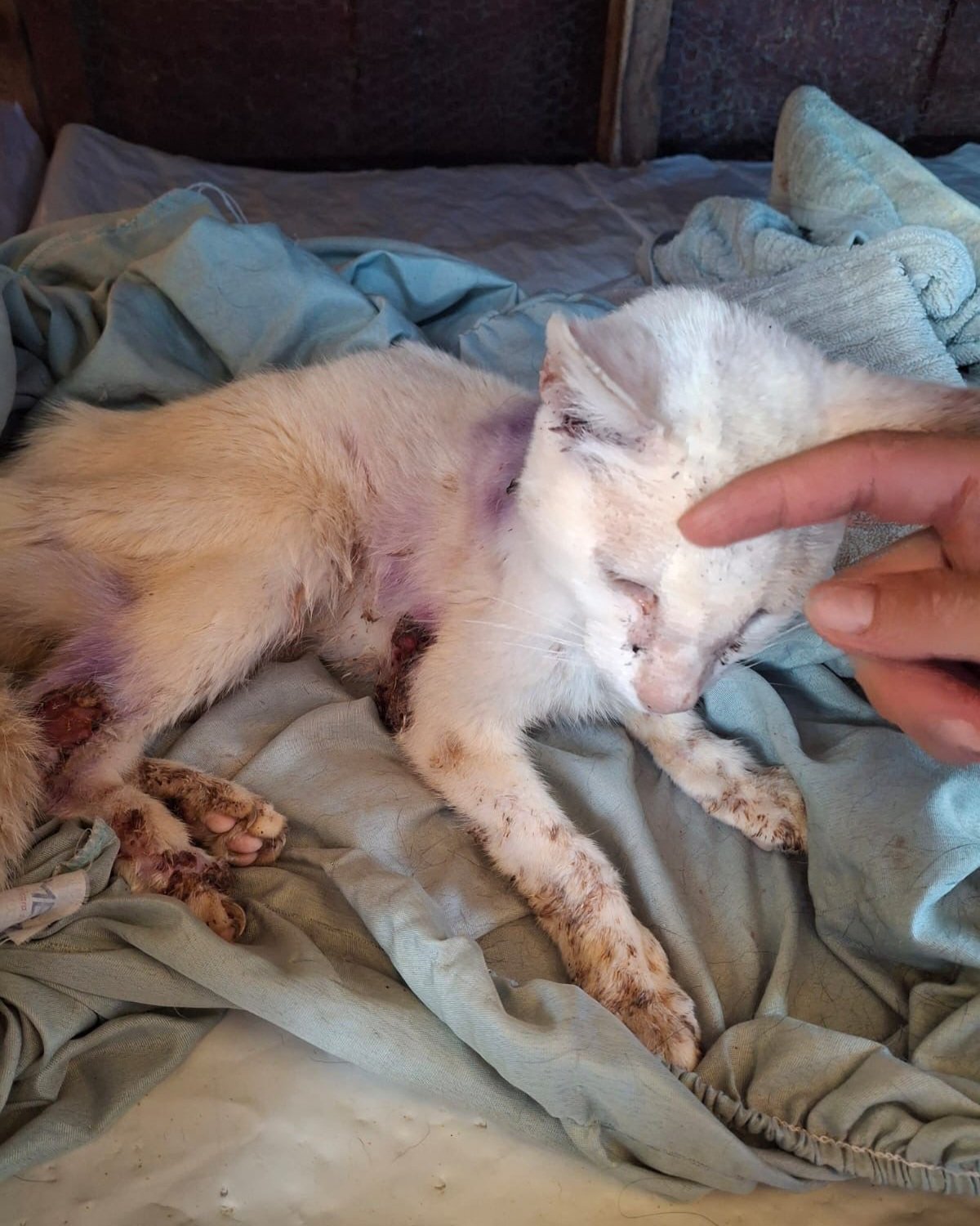 Fui resgatado após ser encontrado na rua com várias lesões, estava com muita dor e miava sem parar. Eu cheguei desidratado, com hipotermia e hipoglicemia. Estou com esporotricose e sou FeLV positivo. Meu caso é gravíssimo.