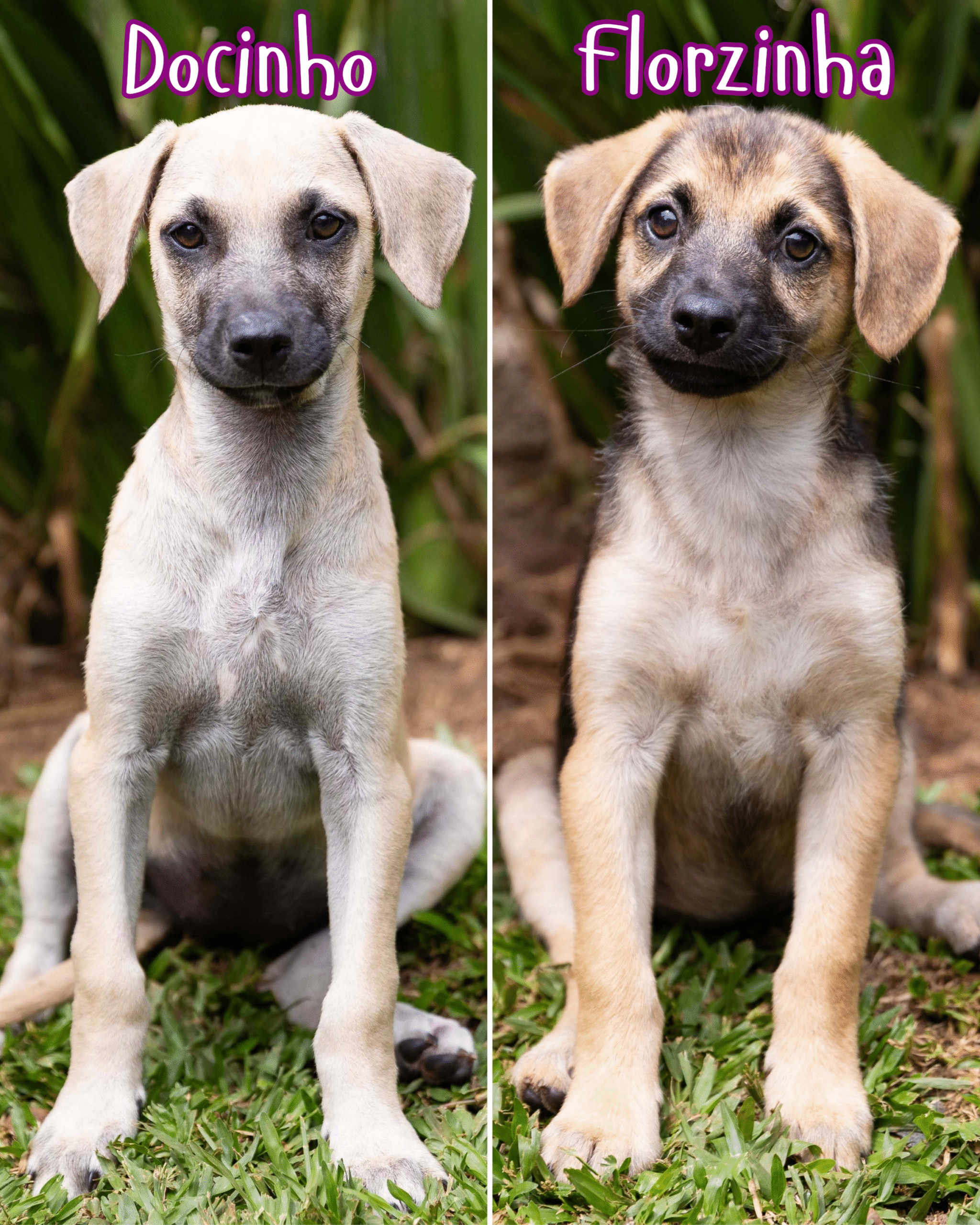 Somos a Docinho e a Florzinha, fomos resgatadas após sermos abandonadas, éramos bebezinhas muito pequenas. Nós tínhamos uma irmãzinha, a Lindinha, ela foi atropelada e ficou com o olhinho saltado para fora, infelizmente quando as tias vets foram fazer a cirurgia dela, ela não resistiu 🙁 Nós estávamos anêmicas, desidratadas, com pulgas, carrapatos e vermes. As tias cuidaram de nós e já estamos prontas para encontrar novas famílias.