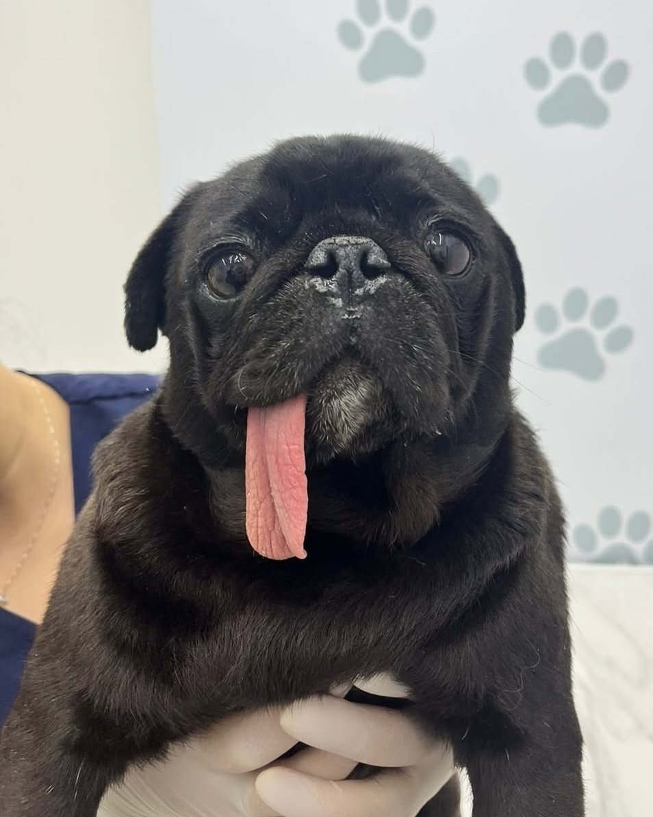 Fui resgatada após aparecer em um anúncio de venda, eu fui usada como matriz a vida inteira, disseram que tenho 3 anos mas aparento muito mais, pela vida sofrida que tive. Já perdi todos os dentinhos de um lado e minha língua fica pendurada pra fora, os outros dentes estão deformados e cheios de tártaro. Além disso, estava com mastite, leite nas mamas e secreção na vulva. Agora as tias farão todos os exames, tratamento odontológico, castração e tudo mais que eu precisar para ter uma vida digna daqui pra frente.