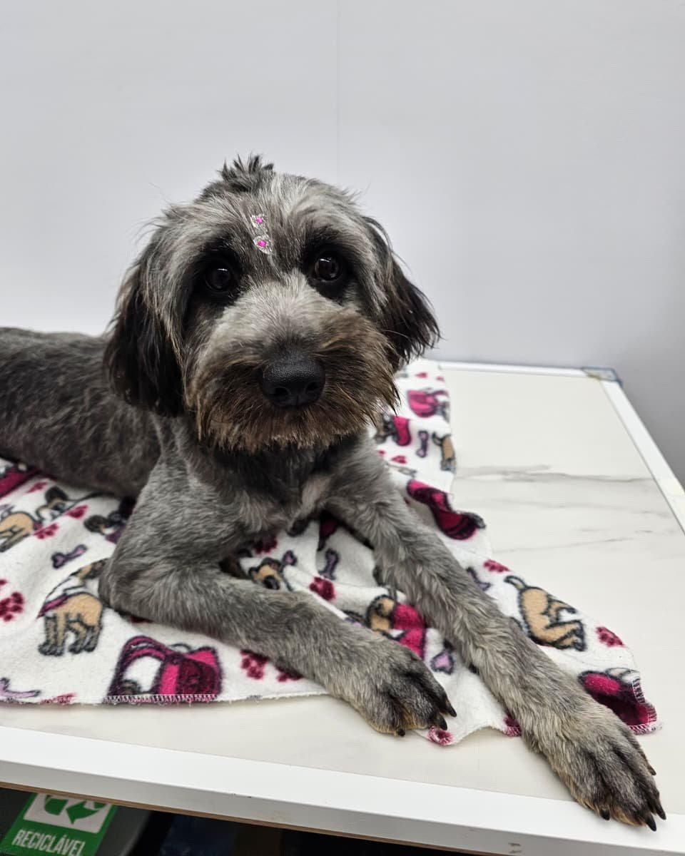 Fui resgatada após ser atropelada e ficar dois dias sem atendimento, estava arrastando as patinhas de trás, com bastante dificuldade para andar. Estava com fraturas no fêmur direito e esquerdo e fratura na tíbia direita. Foi feita cirurgia para colocar pinos nas minhas patinhas de trás. Tive um longo pós-operatório e fiz fisioterapia para voltar a andar. Agora estou recuperada, aguardando pela minha nova família!