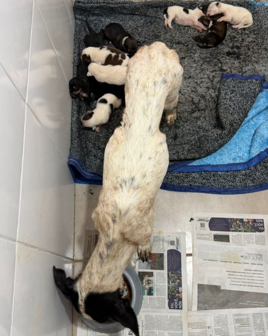 Fui resgatada após ser encontrada em um buraco que cavei no meio do mato, para meus filhotes nascerem. As tias tinham me visto outro dia perto da chácara SOS mas não conseguiram me pegar. Eu estava caquética, muito debilitada. Mas agora tudo mudou, eu e meus bebês estamos tendo todo cuidado e carinho que precisamos. Minha família é bem grande, então as tias vão precisar de ajuda pra ração, vermífugos, vacinas… Você ajuda elas?