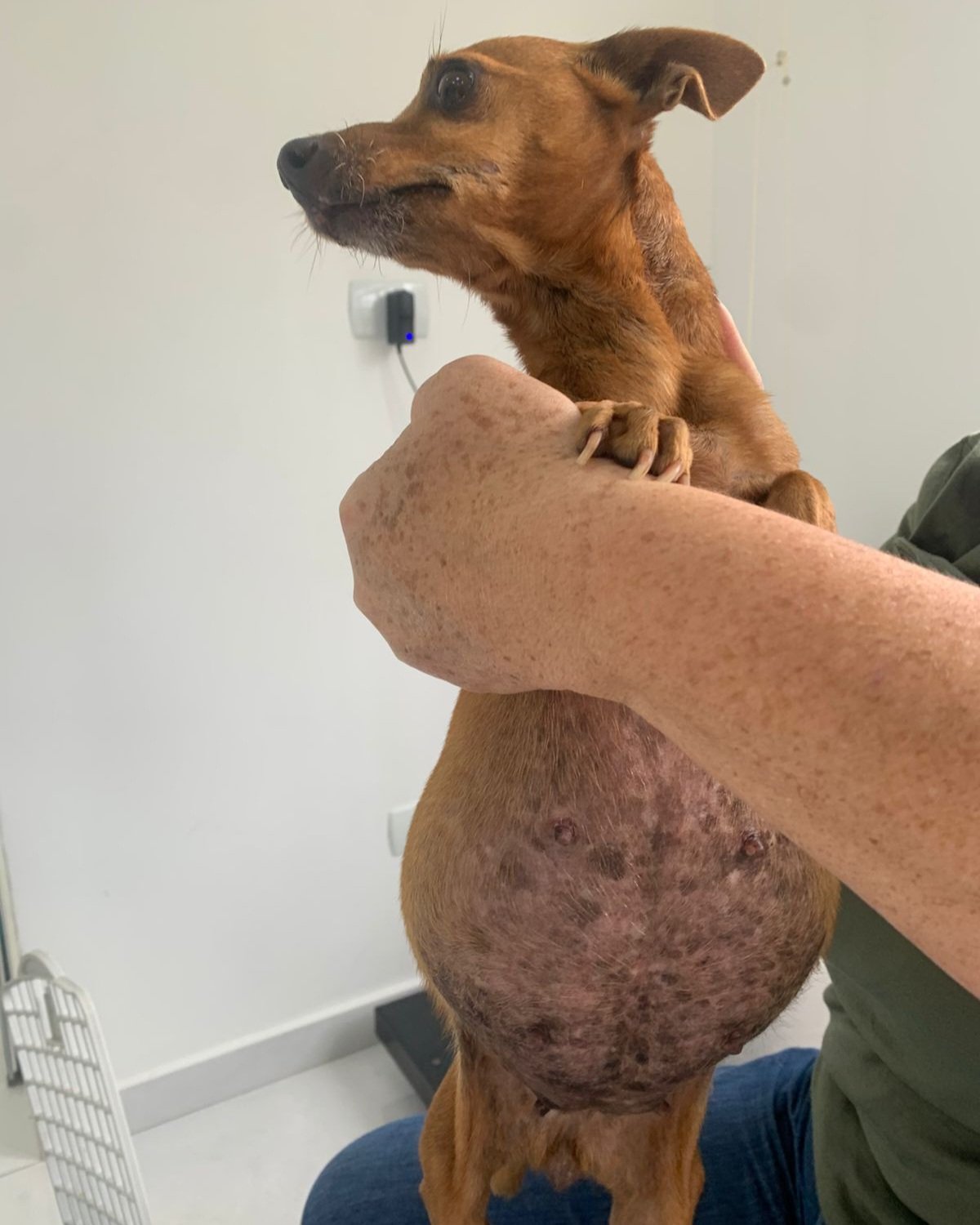 Fui resgatada após ser encontrada com a barriga extremamente inchada, com desconforto e dificuldade para me movimentar. As tias na clínica viram que era líquido e precisava ser drenado, foi retirado 2,5 litros do meu abdômen! Vou fazer todos os exames para descobrir o que está causando isso e fazer o tratamento necessário.