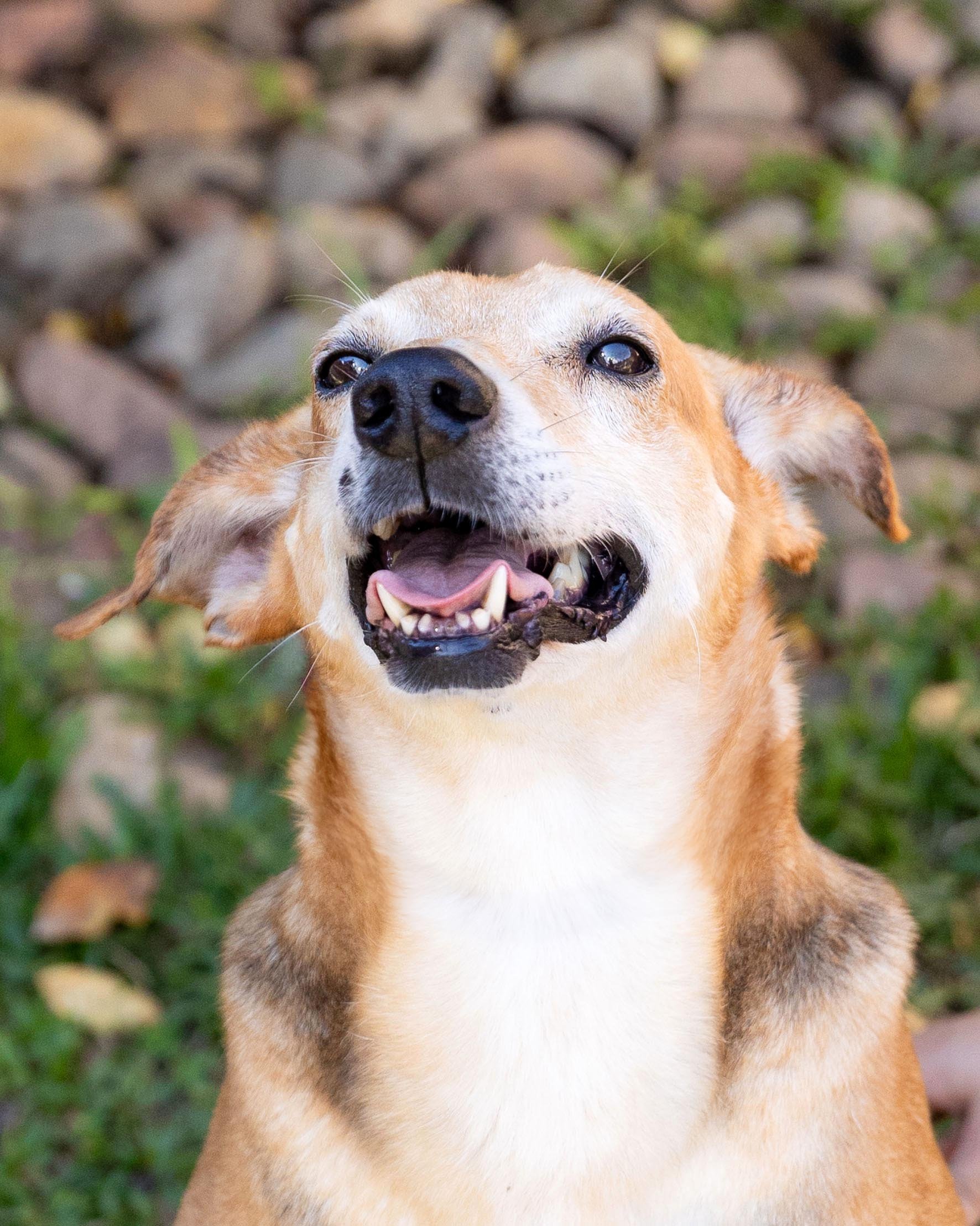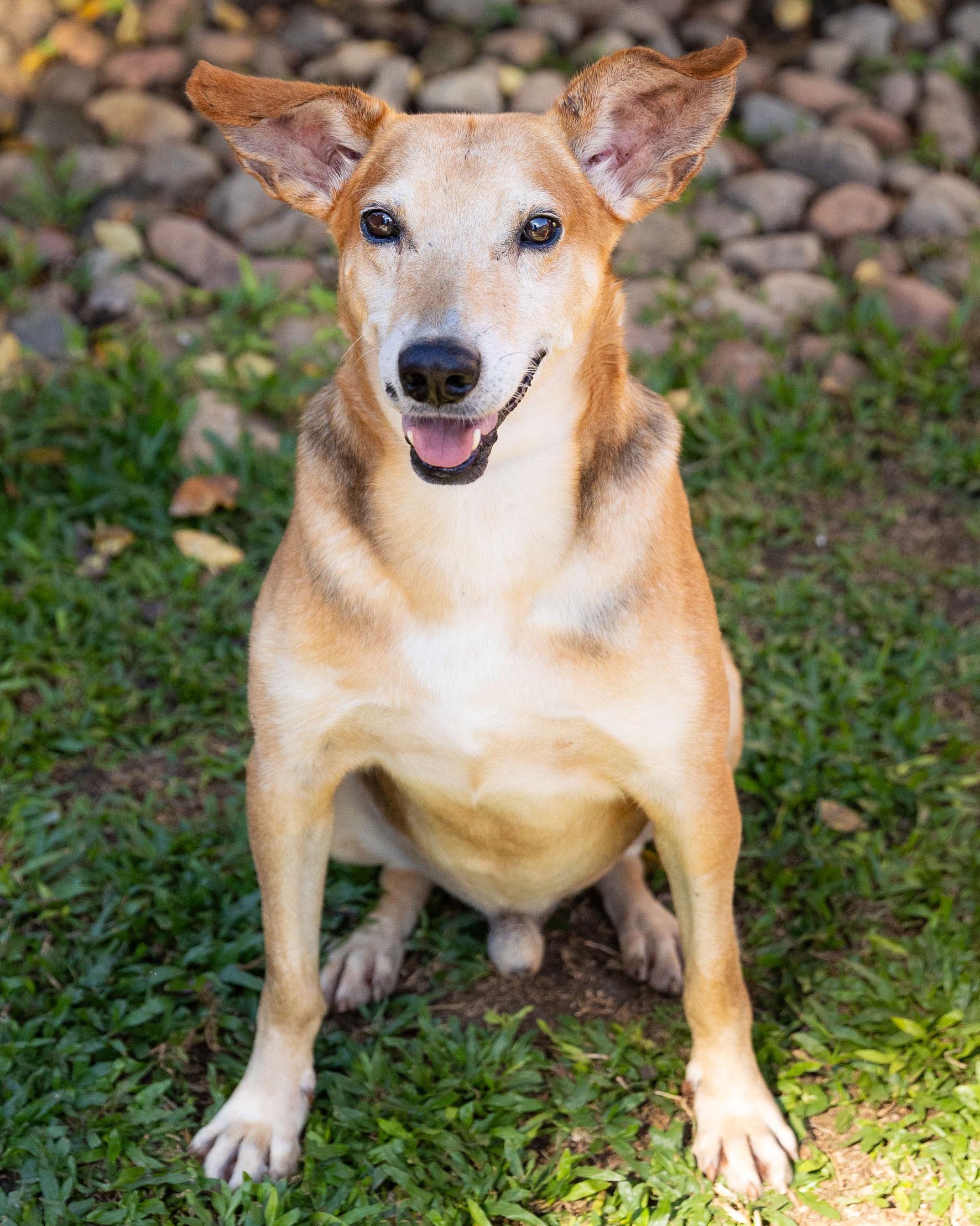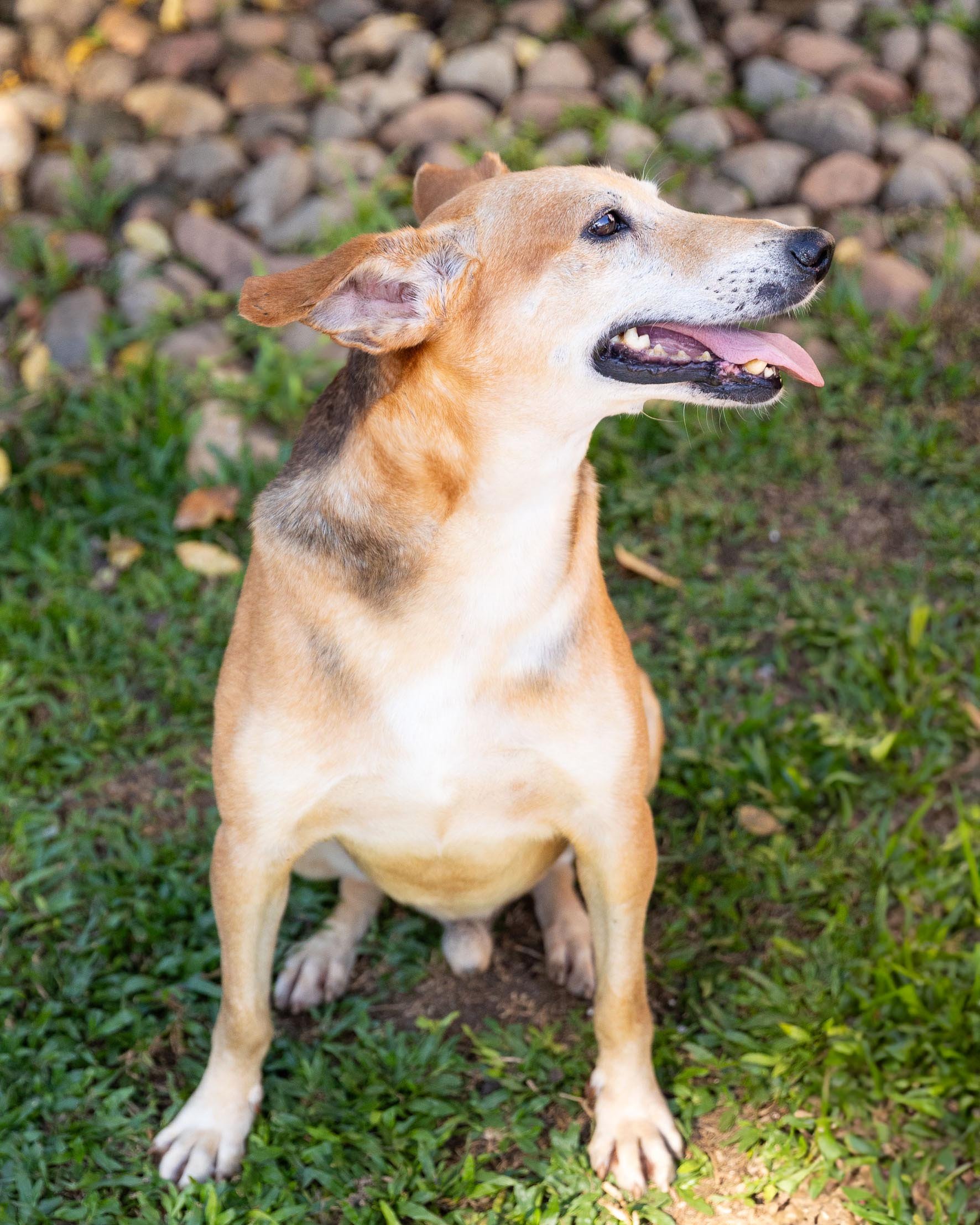 Fui resgatado após ser encontrado com uma lesão enorme na minha cabeça, estava cheia de bichinhos. As tias fizeram todo tratamento e estou ótimo agora.