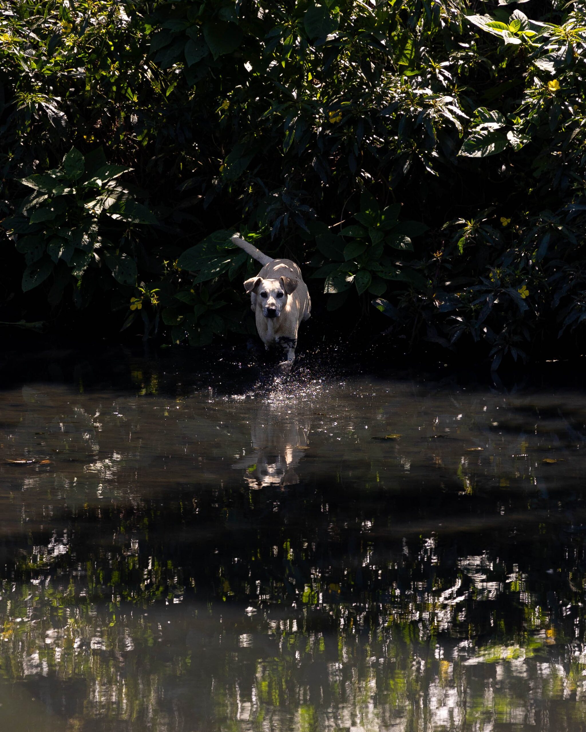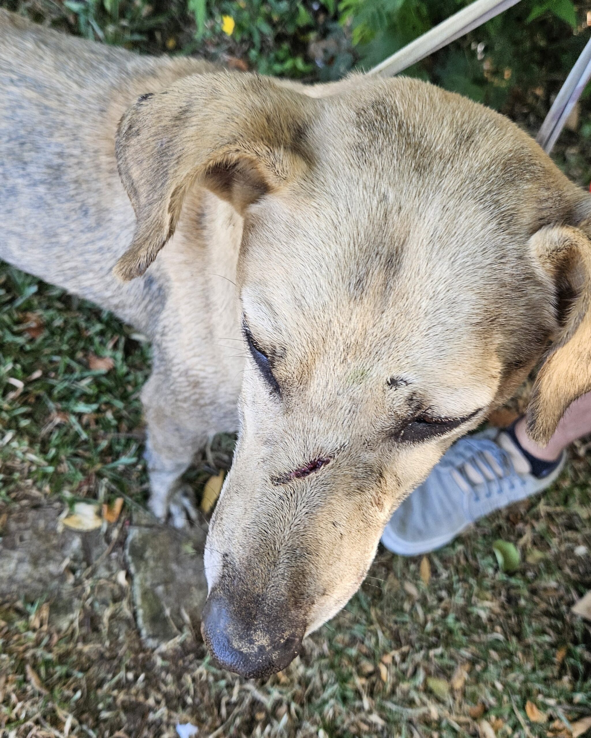Fui resgatado após aparecer e comer a ração que tinham deixado para tentar resgatar um aumiguinho que estava ao lado de um rio. Quando eu vi as tias do outro lado, eu nem pensei em nada, corri e me atirei na água, nadei muito rápido! Sou ótimo nisso, por isso ganhei esse nome 🏊🏻♂️ Eu tinha algumas escoriações no focinho, gengiva e na pata. Estava extremamente magro, com perda de massa muscular, desidratado, cheio de pulgas e carrapatos. Agora terei todo cuidado necessário pra me recuperar.