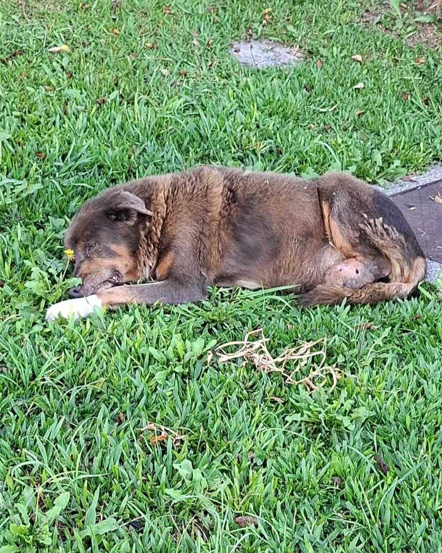 Fui resgatado após ser atropelado, estava muito debilitado, com fratura exposta na pata e tomada pelos bichinhos e contaminação, tinha muita dor! Infelizmente não tem como salvar a minha perna, precisarei de cirurgia de emergência para amputação, é a única forma de acabar com a dor e controlar a infecção.