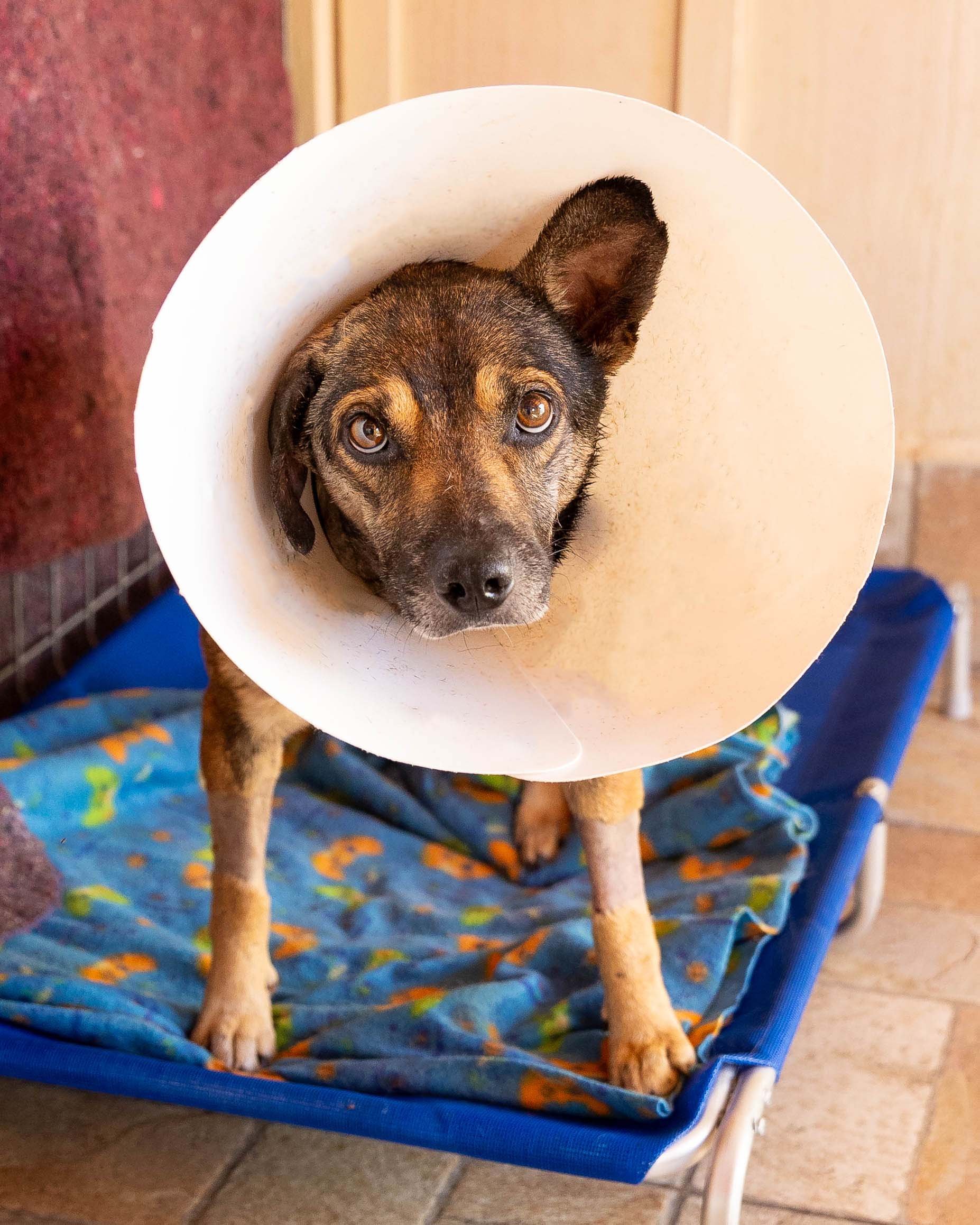 Fui resgatado após ser atropelado, as lesões já estavam cheias de bichinhos. Estava em estado grave, muito debilitado, com diversos furos pelo corpo, fratura óssea antiga exposta no pé, feridas com secreção e edema. Minha perninha precisou ser amputada, mas agora já estou recuperado, ando e corro normalmente!