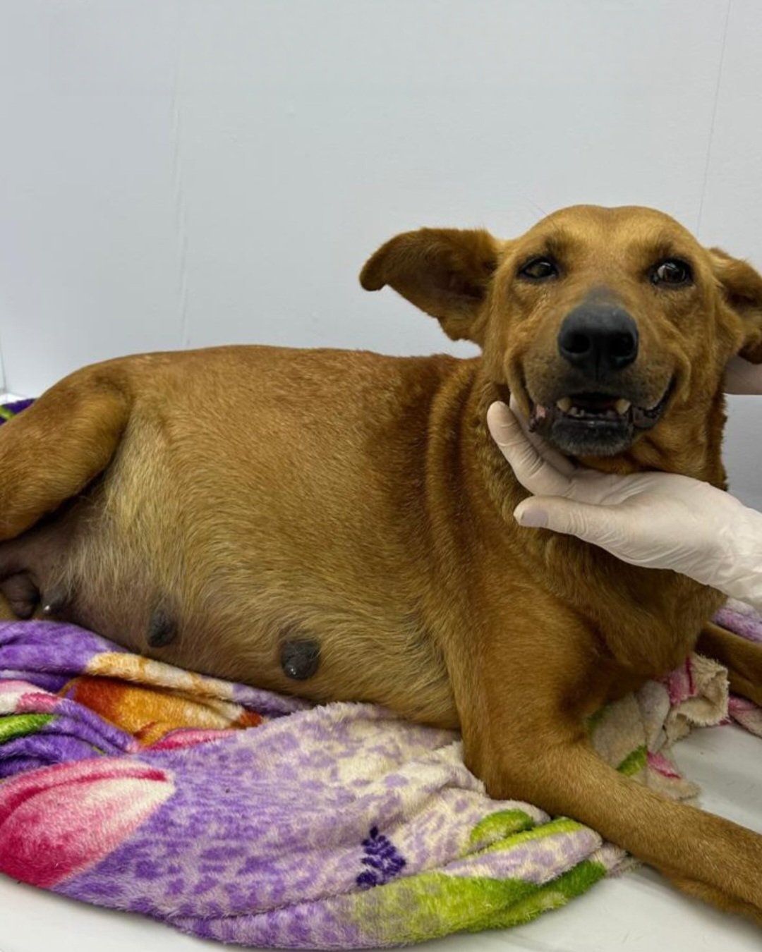 Fui resgatada após ficar 2 dias em trabalho de parto, estava com a barriga bem grande e muito ofegante. Preciso de cesária de emergência e nasceram 8 bebês 🥹 Agora as tias vão fazer todo possível para ficarmos bem. Você pode ajudar elas cuidarem da minha família?